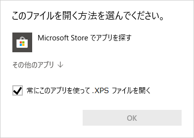 伝の心で「「伝の心」取扱説明書」などのXPSドキュメントを閲覧する時、下記のように「このファイルを開く方法を選んでください。」と表示される場合があります。(OSバージョン1803より適用となっております)